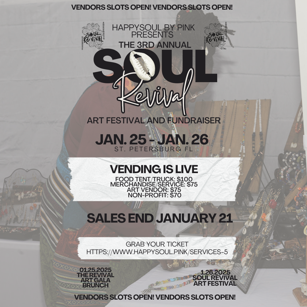 Categories: All Crop Tops Sets Soul Revival New Sale Happy Pack Tees Hoodies Pants Shorts Kids All | Crop Tops | Sets | Soul Revival | New | Sale | Happy Pack | Tees | Hoodies | Pants | Shorts | Kids | Quick View Raffle Tickets from $3.00 Quick View Group Art Therapy at Soul Revival: Choose a Session $25.00 Quick View The Revival: Art Gala Brunch | Jan. 25 - 11AM-3PM - James Museum $50.00 Quick View Vendor Ticket | FILL OUT FORM BEFORE PURCHASING TICKET from $70.00 Quick View Soul Revival Hoodie from $45.00 Quick View Soul Revival T-Shirt $35.00 Quick View Eco Tote Bag $25.00 Quick View Youth Soul Revival T-Shirt $30.00 Quick View BYO Happy Pack from $100.00 Quick View HappySoul Graphic (Pink) $45.00 Quick View Minimalist HappySoul Tee (Black) from $40.00 Quick View OG HappySoul Tee (White) from $40.00 Quick View OG HappySoul Tee (Black) from $40.00 Quick View HappySoul Crop Top (Black) $35.00 Quick View HappySoul Crop Top (White) $35.00 Quick View Distressed Denim Bucket HappySoul Hat $30.00 Quick View Happy Dad Hat | Black $20.00 Quick View Kids HappySoul Tee (Black) $35.00 Quick View HappySoul Sweatpants Sale Price: $35.00 Original Price: $45.00 Sale Quick View HappySoul Est. 2020 Embroidered Long Sleeve Tee Sale Price: $30.00 Original Price: $35.00 Sale Quick View HappySoul Graphic Tee $45.00 Quick View HappySoul Sweatshorts Black from $40.00 Quick View Kids HappySoul Tee (White) $35.00 Quick View HappySoul by Pink Tee (art on back) $45.00 Quick View HappySoul Yoga Pants $40.00 Quick View HappySoul Women's Athletic Short Shorts $35.00 Quick View HappySoul Long-Sleeve Crop Top $45.00 Quick View HappySoul Art Champion Sweatshirt Sale Price: $60.00 Original Price: $75.00 Sale Quick View Black HappySoul Hoodie $50.00